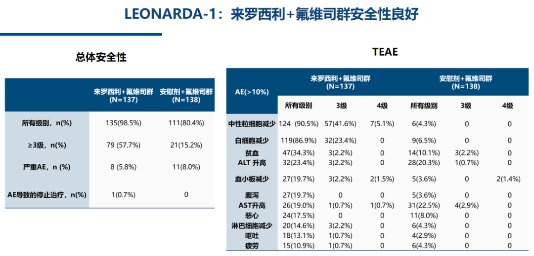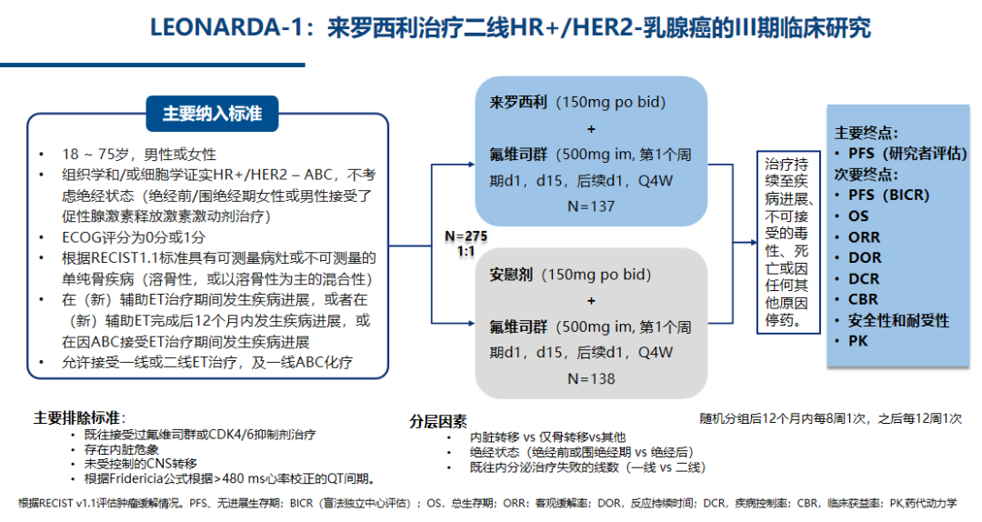 肿瘤瞭望:LEONARDA-1研究是来罗西利在ET经治的HR+/HER2-mBC患者中的关键III期临床试验,来罗西利在该研究中的疗效和安全性表现如何(尤其是针对难治性患者)?