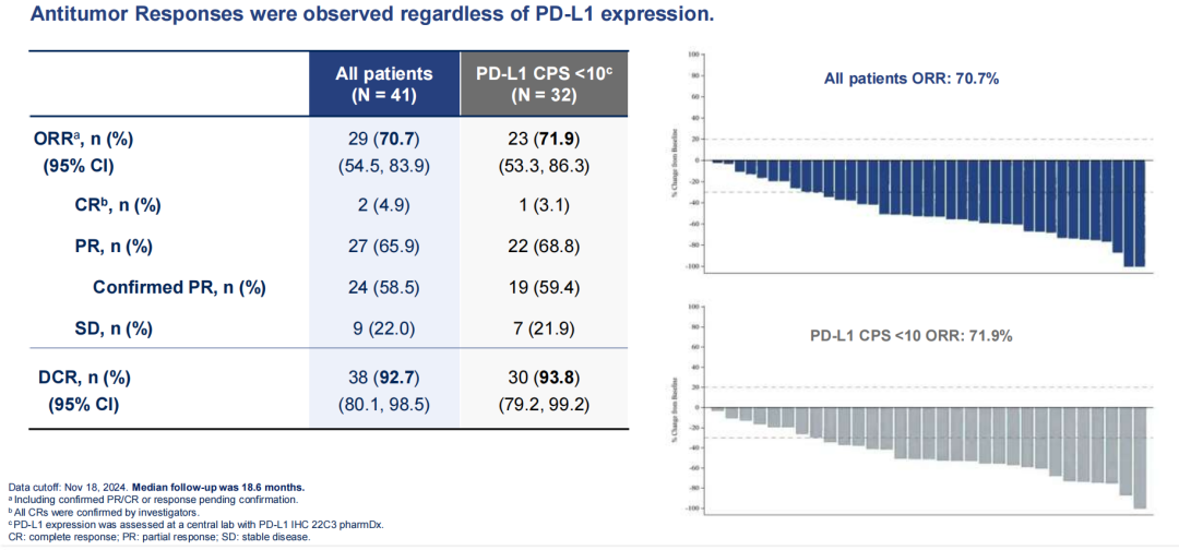 △全体人群和PD-L1 CPS<10患者的抗肿瘤反应