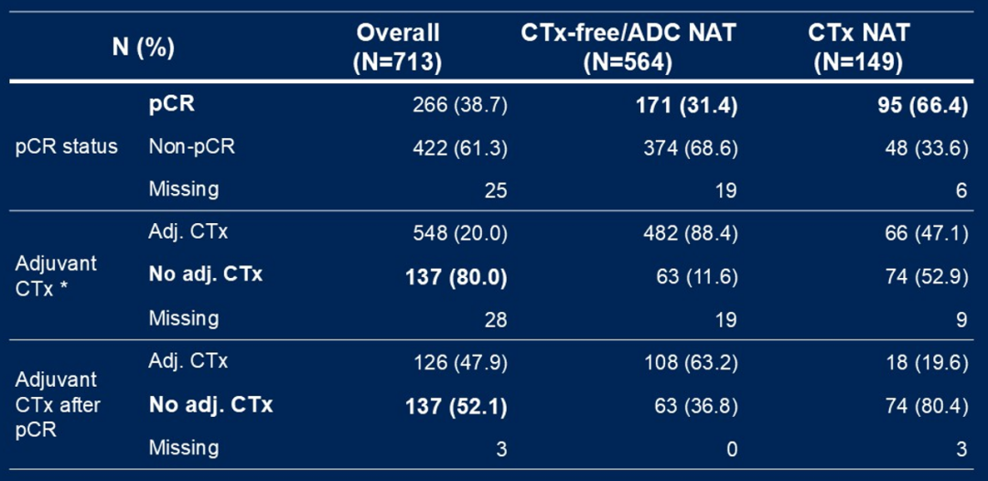 该研究将探索在引入新型ADC药物的情况下,HER2阳性高危患者是否能够在新辅助治疗中实现“去化疗”的同时,进一步提高疗效和改善预后。目前初步信息显示,T-DXd-THP组的pCR率相较于ddAC-THP有显著提升,且显示了良好的安全性和EFS获益趋势(EFS未成熟)。未来,当我们看到这项研究在细节上的披露,包括人群选择和分类数据时,可能会为临床实践带来一些重要的启示。