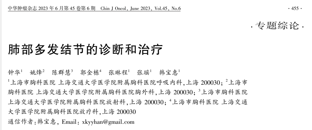 上海胸科医院韩宝惠、钟华教授团队在《中华肿瘤杂志》发表综述,基于多学科诊疗(MDT)模式,系统梳理了多发肺结节的诊断评估、外科治疗、局部治疗、辅助治疗及随访策略。《肿瘤瞭望》特此整理核心要点,为临床实践提供参考。