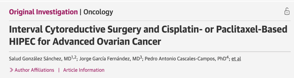 [2]González Sánchez S,García Fernández J,Cascales-Campos PA,et al.Interval Cytoreductive Surgery and Cisplatin-or Paclitaxel-Based HIPEC for Advanced Ovarian Cancer.JAMA Netw Open.2025;8(6):e2517676.