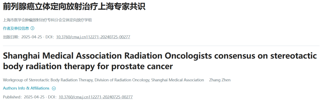 上海市医学会肿瘤放射治疗专科分会立体定向放疗学组.前列腺癌立体定向放射治疗上海专家共识[J].中华放射医学与防护杂志,2025,45(4):261-274.DOI:103760/cma.j.cn112271-20240725-00277
