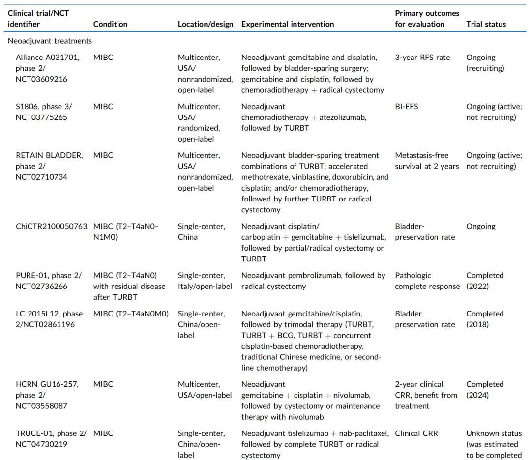 表1.已完成或在研的MIBC围术期治疗研究