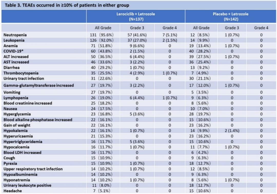 [8]Xichun Hu,et al.LEONARDA-2:Lerociclib plus letrozole versus placebo plus letrozole in HR+/HER2-advanced or metastatic breast cancer..J Clin Oncol 42,2024(suppl 16;abstr 1052).