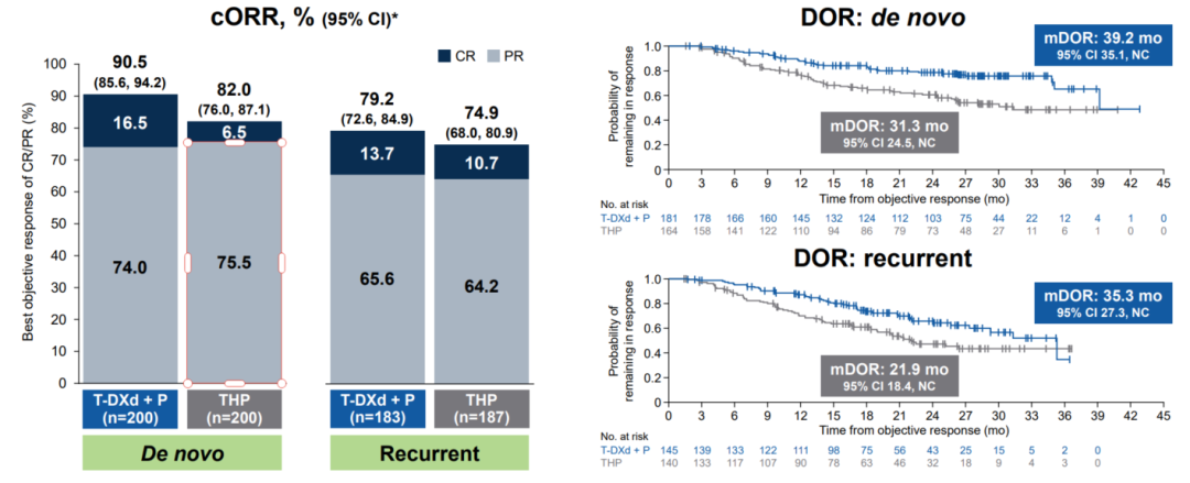 图5.HR阳性与HR阴性人群的PFS、cORR、DOR