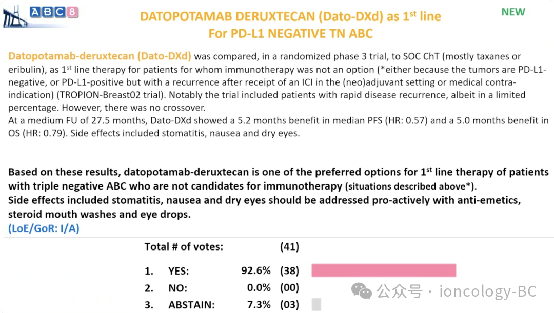 编者按:第8届晚期乳腺癌国际共识会议(ABC8)于当地时间2025年11月6~8日在葡萄牙里斯本举行。ABC共识指南是晚期乳腺癌领域首屈一指的国际性权威指南,汇聚了全球晚期乳腺癌领域的“意见领袖”级别专家,基于最新的循证医学证据对前沿和热议话题进行投票以达成共识,为全球晚期乳腺癌临床实践的革新和规范提供指导意见。肿瘤瞭望对晚期TNBC治疗相关问题的专家意见和投票结果整理如下。