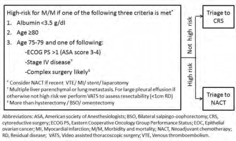 新辅助化疗还是手术?少些猜想,多些证据:一种证实有效的可识别出卵巢癌肿瘤细胞减灭术后高发病率/死亡率的女性患者的分类算法