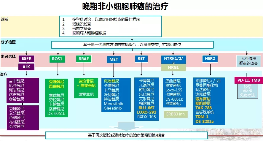 在肺癌中越来越多的驱动基因被发现,相应出现了越来越多的靶向治疗药物。