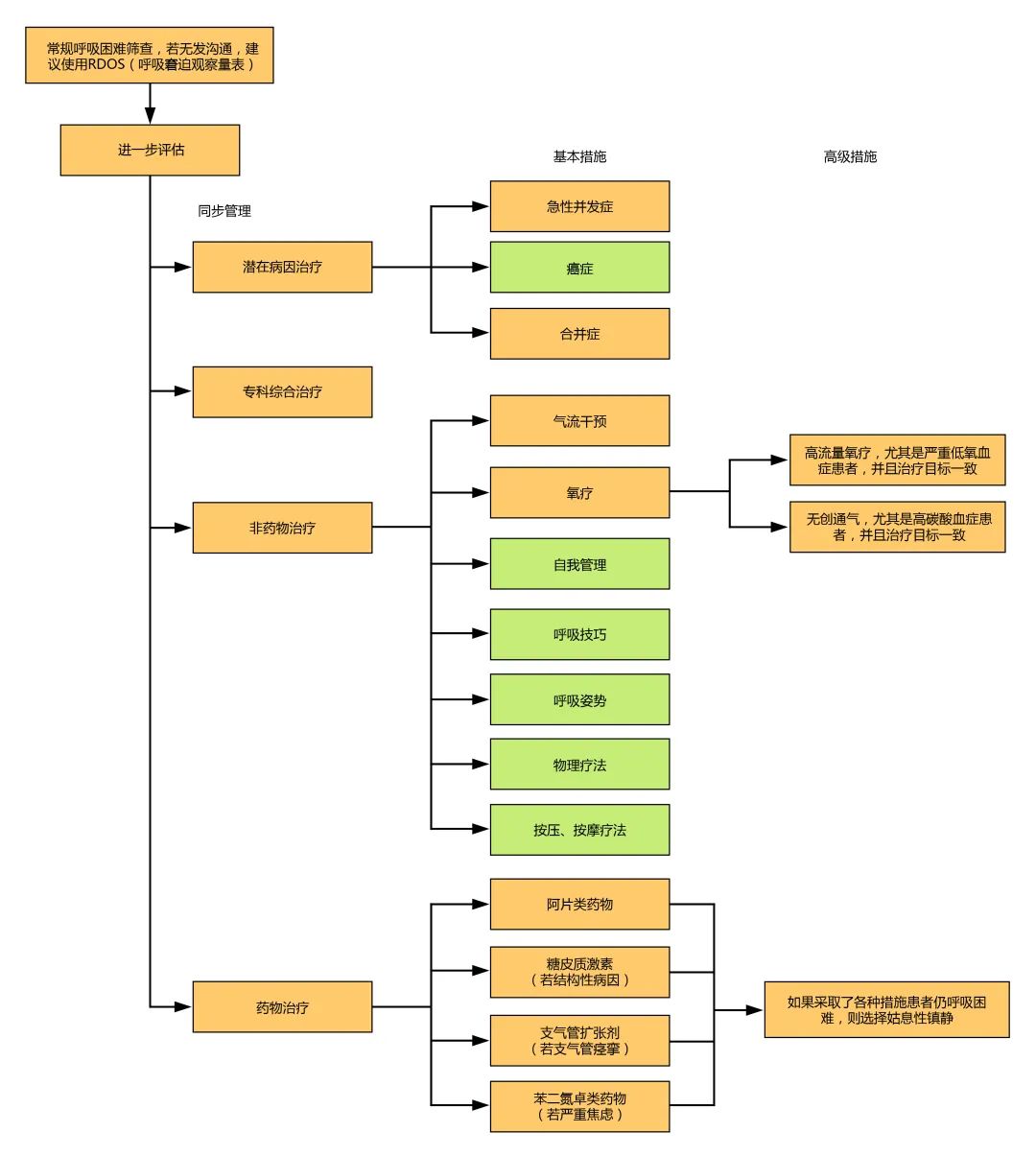 3.1. 晚期癌症伴呼吸困难的患者在可行的情况下应转诊至跨专业姑息治疗团队(类型:基于证据医学;证据质量:中等;推荐强度:强)。