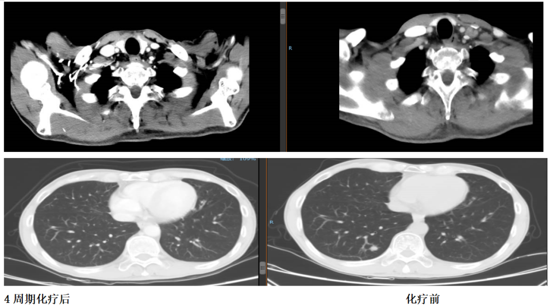 经影像学评估后,患者肝脏、双肺、颈部淋巴结无进展。