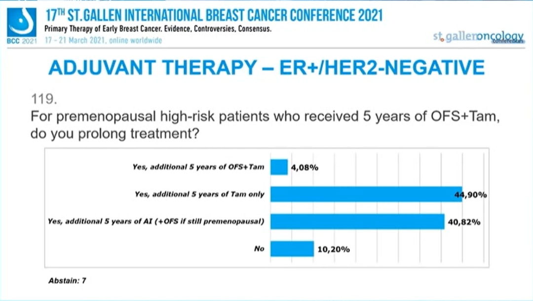 对于接受了5年OFS+TAM治疗的绝经前高危患者,你是否会延长治疗?