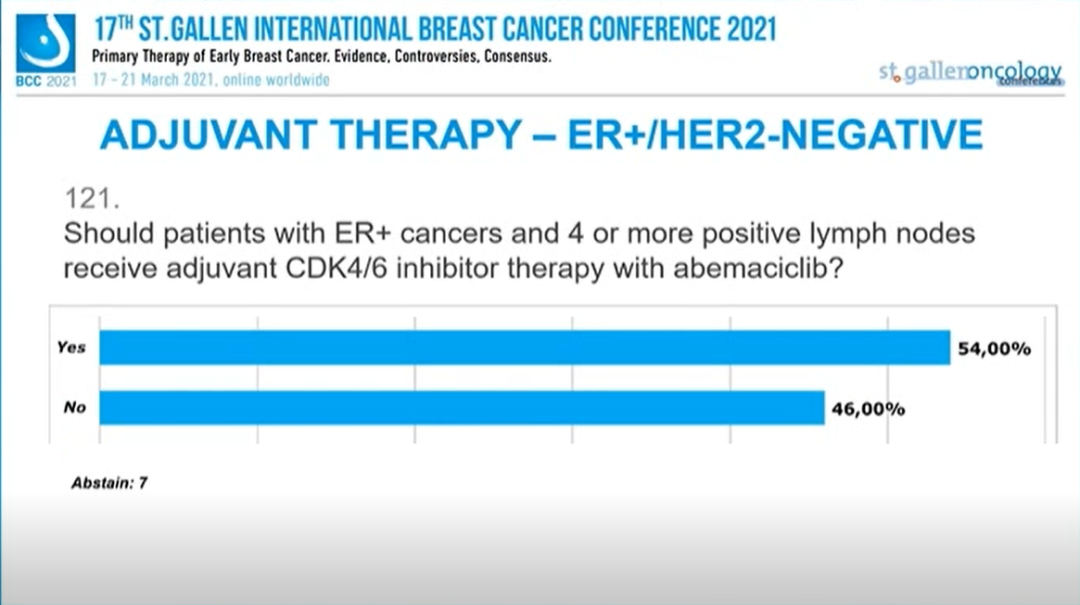 ≥4个阳性淋巴结的ER+患者是否应该接受CDK4/6抑制剂阿贝西利辅助治疗?