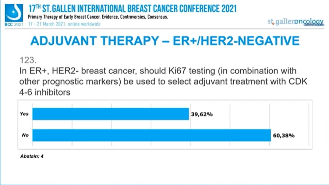 对于ER+/HER2-的乳腺癌患者,辅助治疗中Ki67检测(联合其他预后标志物)是否应该被用来指导CDK4/6抑制剂的选择?