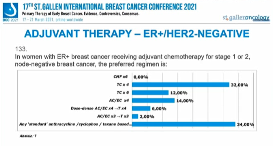 TNBC且淋巴结阴性乳腺癌:辅助治疗合适的阈值是: