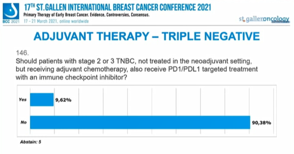 未经新辅助治疗的2期或3期TNBC患者,其辅助治疗是否需要在化疗基础上联合PD-1/PD-L1免疫检查点抑制剂?