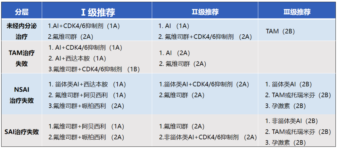 ▲2021版CSCO BC指南HR阳性晚期乳腺癌解救内分泌治疗推荐