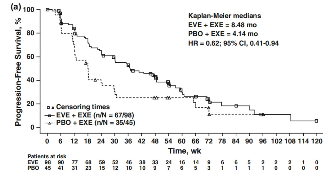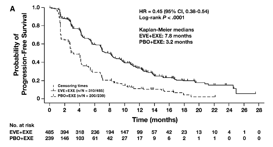 图5. BOLERO-4研究依维莫司一线治疗的PFS生存曲线