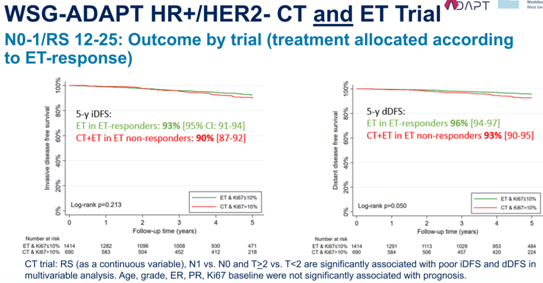结论:大型前瞻性III期ADAPT试验的高危队列的初步结果为>4枚淋巴结阳性的某些患者(如低RS)提供了良好预后的证据。此外,即使在高RS评分患者中,较低的内分泌治疗后Ki-67以及局限的肿瘤负荷患者很可能成为降阶梯化疗的标准治疗人群。