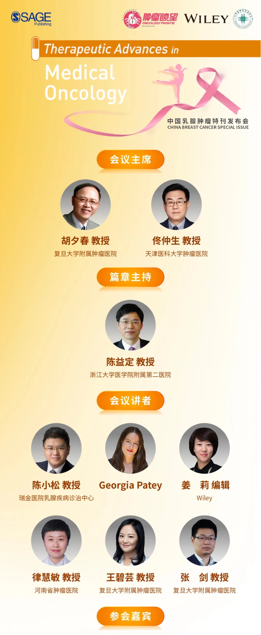 8月22日15:20—17:30,TAM中国乳腺肿瘤特刊发布会将以线上形式举行,胡夕春教授和佟仲生教授担任大会主席。欢迎广大乳腺癌领域的同道相聚云端,了解特刊的更多信息,共享国际机遇。