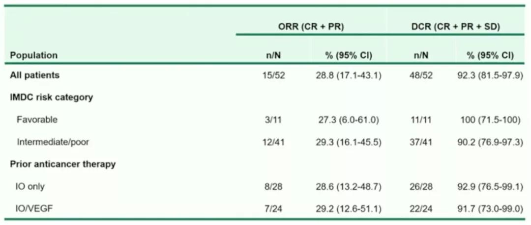 表1. 总体及亚组患者的ORR和DCR