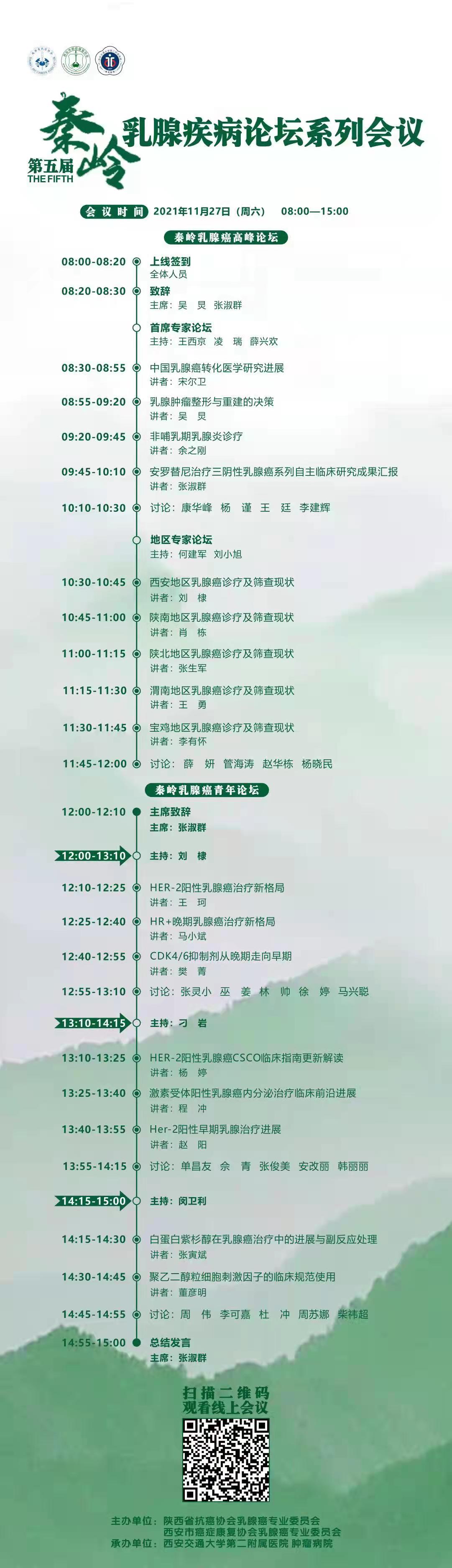 由陕西省抗癌协会、陕西中医药专家协会、西安市癌症康复协会主办单位,西安交通大学第二附属医院肿瘤病院承办的“第五届秦岭乳腺疾病论坛系列会议”将于2021年11月27日以线上会议的形式举行。