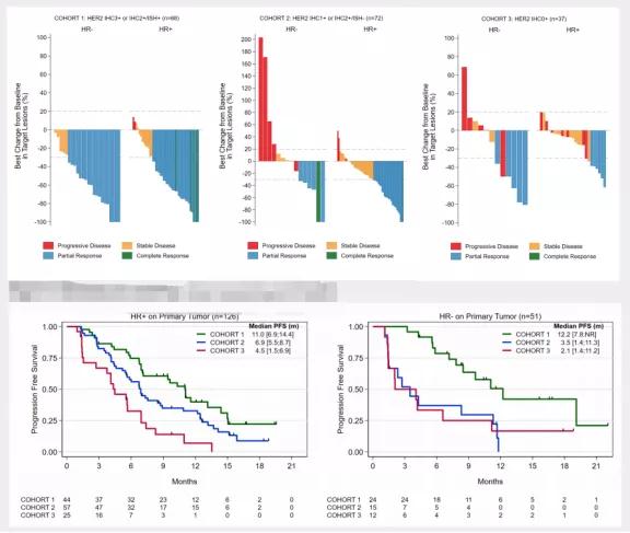 SYD985治疗HER2低表达晚期患者的I期结果为激素受体(HR)阳性患者的ORR为27%,PFS为4.1个月,而三阴性乳腺癌组的ORR为40%, PFS为4.4个月。