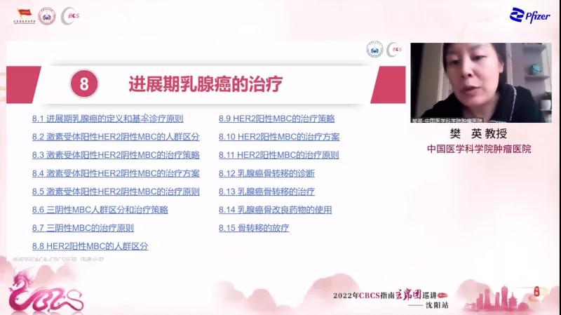 在晚期乳腺癌方面,由大连医科大学附属第二医院李曼教授主持,中国医学科学院肿瘤医院樊英教授从进展期乳腺癌定义、不同分子亚型进展期乳腺癌的治疗策略与方案、乳腺癌骨转移的几个方面探讨了《CBCS指南》的内容要点,为优化晚期乳腺癌临床治疗策略带来了更好的选择。