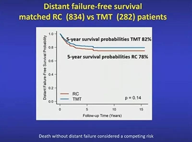 ● 5年无远处转移生存率为78%vs 82%,P=0.14;