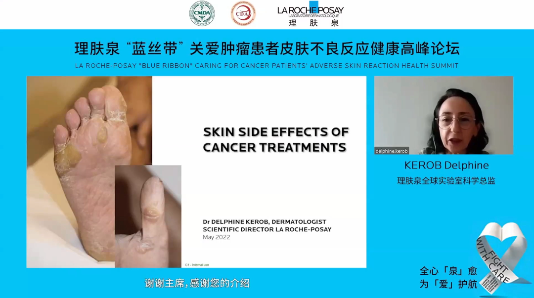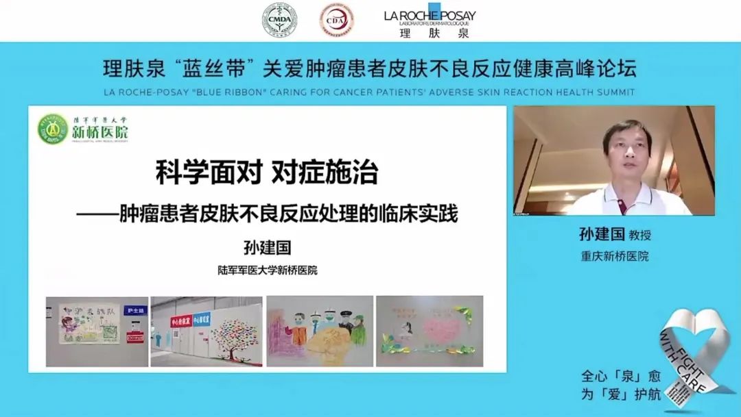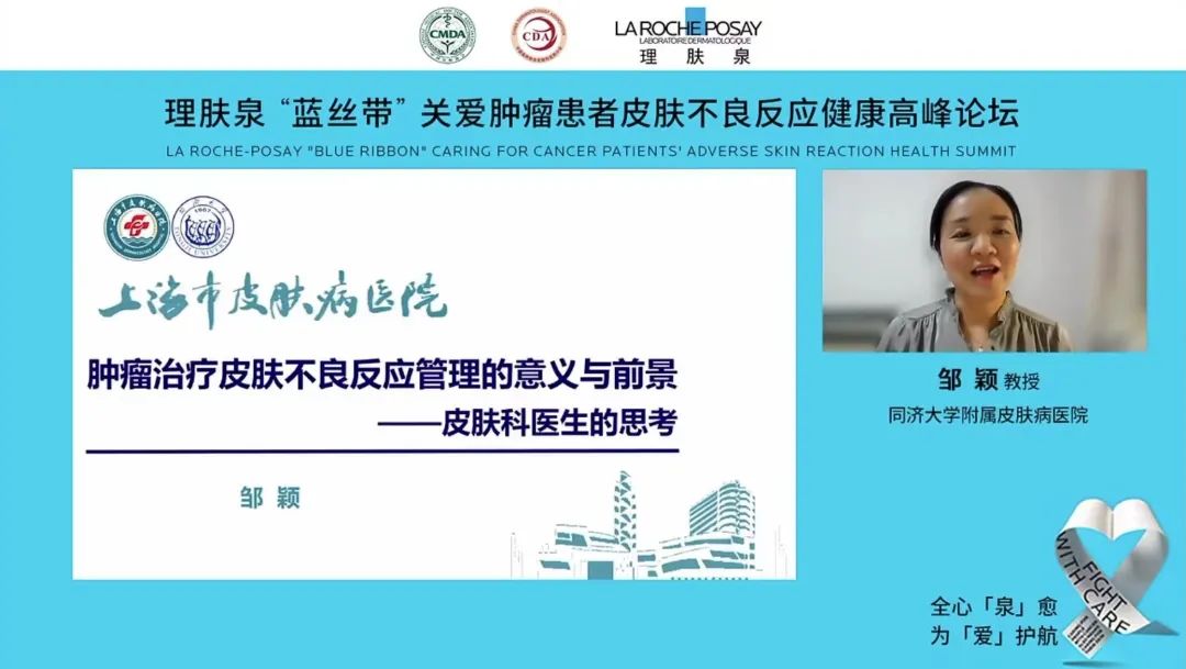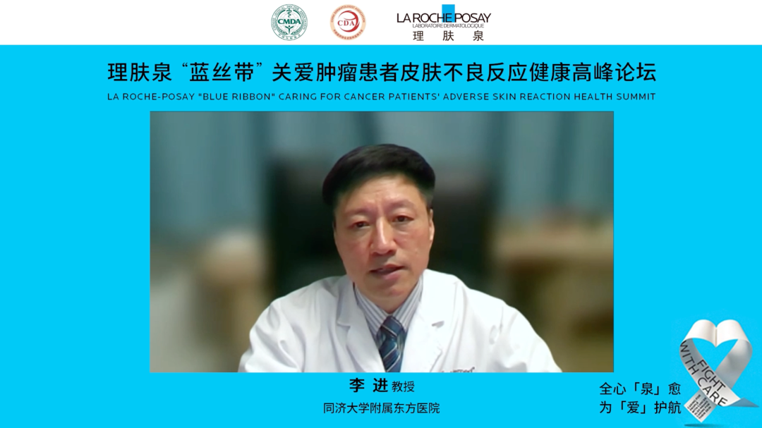 编者按:2022年5月25日“全国护肤日”,为贯彻《“健康中国2030”规划纲要》并提高癌症患者生存质量,中国临床肿瘤学会(CSCO)、中国医师协会皮肤科医师分会(CDA)共同携手理肤泉开启以“全心「泉」愈,为「爱」护航”为主题的“蓝丝带”关爱肿瘤患者皮肤不良反应健康高峰论坛,首度集结行业跨学科专家,共举皮肤健康的论坛议题。