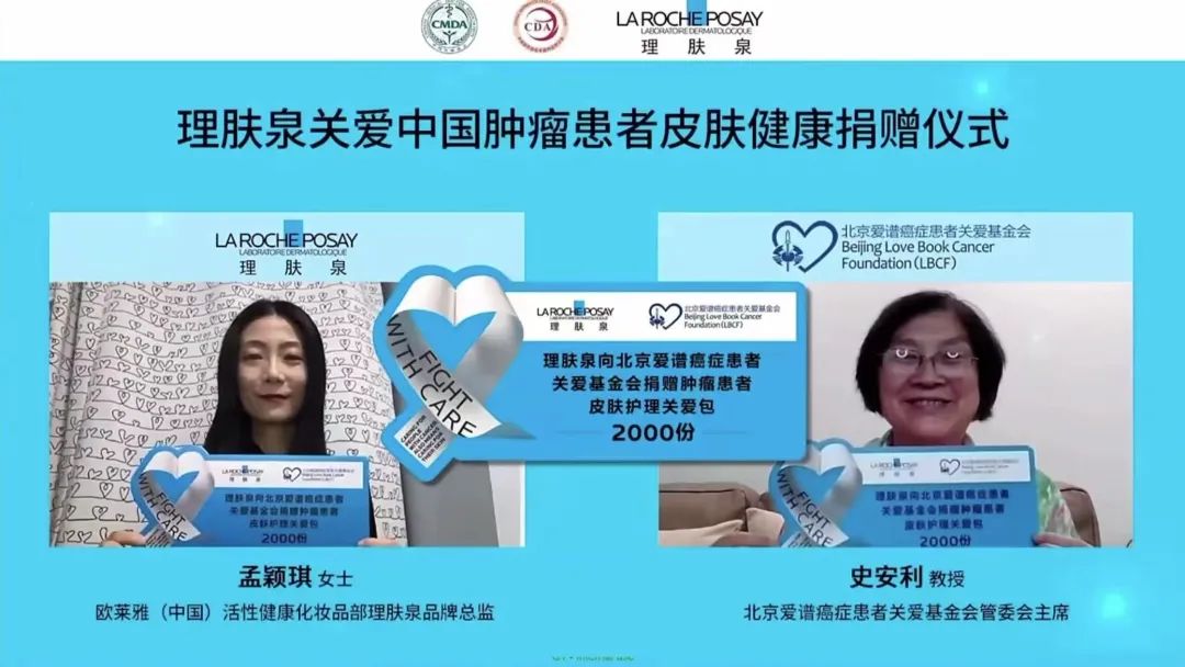 在与会专家的见证下,欧莱雅中国活性健康化妆品部理肤泉品牌总监孟颖琪女士和北京爱谱癌症患者关爱基金会主席史安利女士共同参与关爱中国肿瘤患者皮肤健康的捐赠仪式,为肿瘤患者及其家庭提供了2000份理肤泉皮肤健康关爱包,给予患者切实的关爱与呵护。