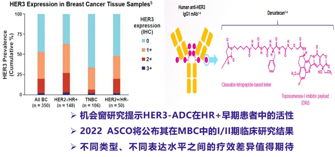 3、Patritumab deruxtecan(HER3-DXd)in early-stage HR+/HER2-breast cancer:final results of the SOLTI TOT-HER3 window of opportunity trial.2022 ESMO BC Abs-LBA3