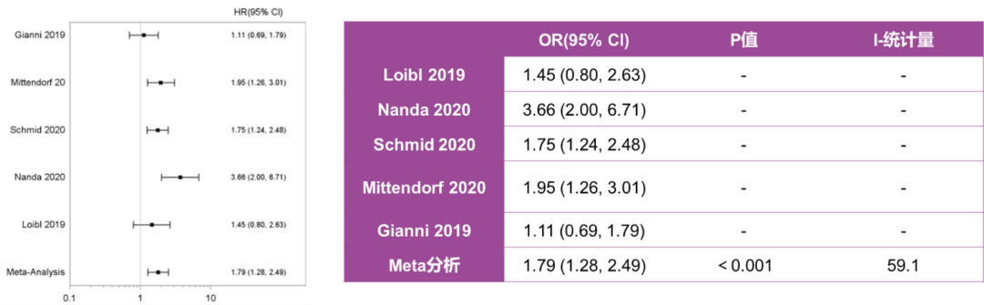 研究方法:从5项RCTs中共纳入1637例TNBC患者,考察早期三阴性乳腺癌(TNBC)对新辅助免疫检查点抑制剂应答的预测因素。