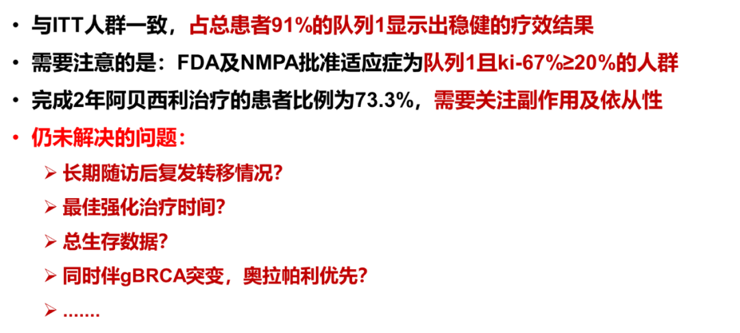 ■HR+:阿贝西利联合ET显著降低3年iDFS和DFRS事件风险,长期随访结果、最佳强化治疗时间、毒副作用、总生存等等问题仍需关注;机会窗试验提示HER3-ADC在HR+早期患者中的活性;