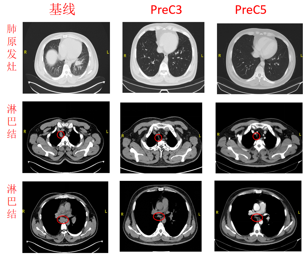 查体:ECOG 1分。全身浅表淋巴结未触及明显肿大及压痛。颈软,未及明显肿物。胸廓对称无畸形,双侧触觉语颤无增强及减弱,双肺叩诊清音,双肺呼吸音尚清晰,未闻及干湿啰音和胸膜摩擦音。头部、心脏、腹部、四肢及神经系统:(-)。