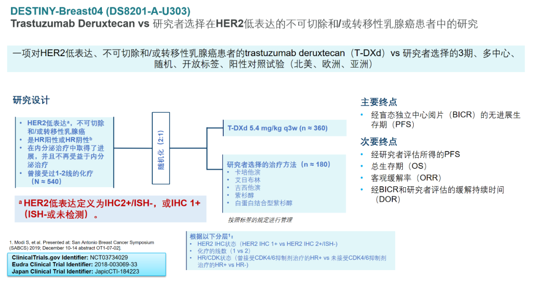 DESTINY-Breast04:T-DXd试水HER2低表达领域、打破抗HER2“二元”格局