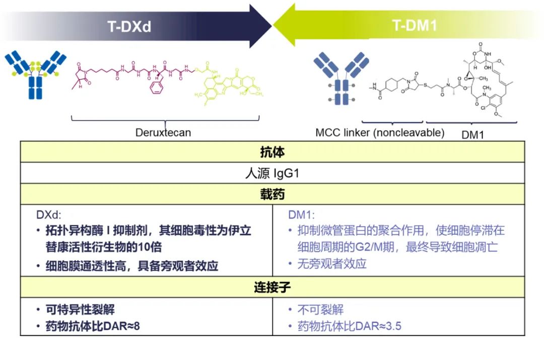 图4.T-DXd和T-DM1的结构特点对比。
