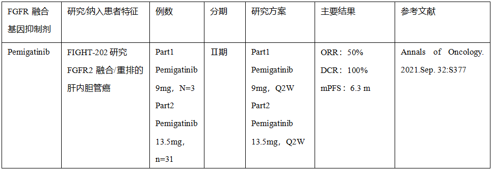 附表:FGFR融合基因抑制剂研究