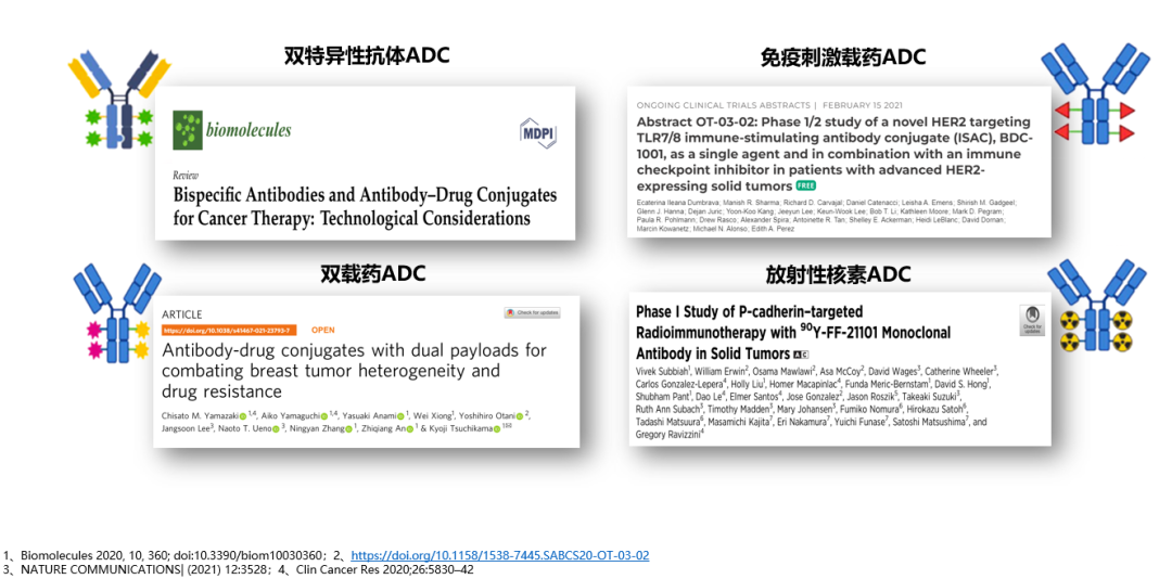 (5)新型ADC药物的设计研发,包括降低毒副反应,并且有望进一步精准升级,目前在研的双特异性抗体ADC、双载药ADC、免疫刺激载药ADC、放射性核素ADC等都可能成为未来我们有利的武器。