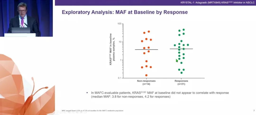 图3.在MAFC可评估人群中,基线时的KRAS G12C突变等位基因频率似乎与疗效无关(欧洲肺癌大会2023,摘要8MO)