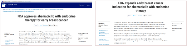 基于monarchE研究OS的尚未成熟(FDA对于新药新适应症获批的重要考虑因素)以及在队列1的Ki-67≥20%亚组显示出显著的iDFS统计学差异,2021年10月12日FDA批准阿贝西利用于临床病理高危且Ki-67≥20%的HR+/HER2-早期乳腺癌辅助强化治疗(队列1的Ki-67≥20%亚组)。随后,多国相继批准阿贝西利早期乳腺癌的适应症,但批准的适应症人群不一,如俄罗斯、巴西批准了ITT人群,日本批准了全队列1人群,中国(2021年12月31日)与FDA获批人群相同为队列1的Ki-67≥20%亚组人群。