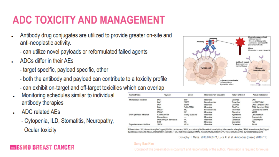 总之,不同ADC药物有不同的毒性反应谱,临床实践中需要仔细处理,应做到早期发现、精准评估、及时干预。同时,最佳剂量策略、支持性治疗可以减轻副反应作用,并最大限度地延长治疗持续时间和获益。