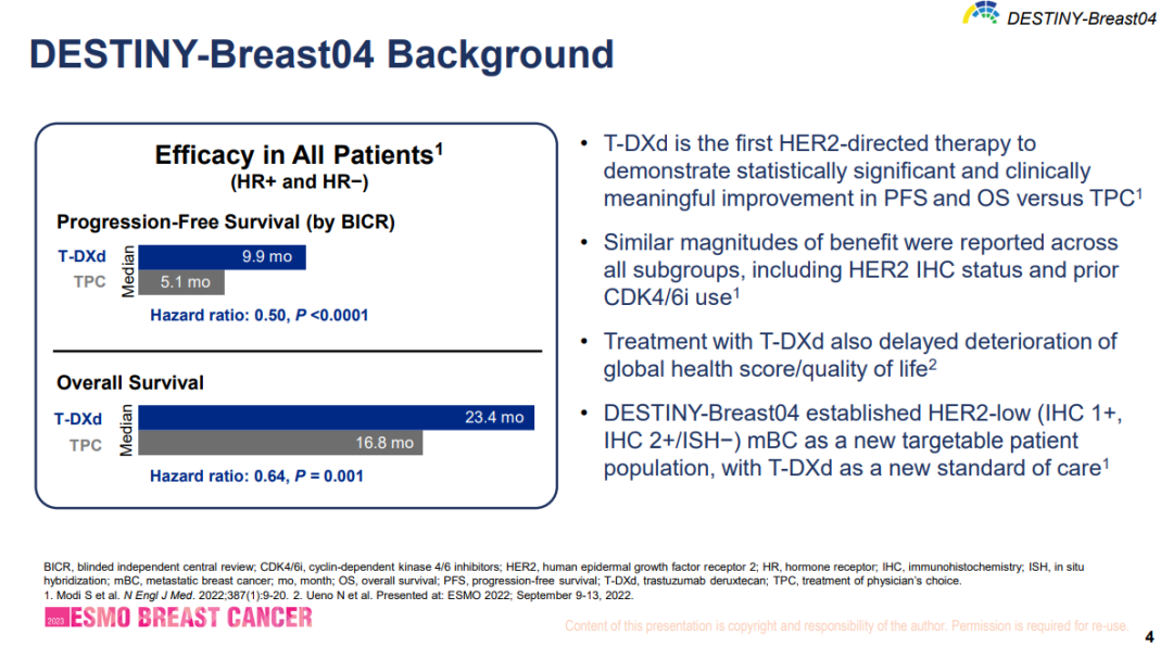 4.Modi S,Jacot W,Yamashita T,et al.Trastuzumab deruxtecan in previously treated HER2-low advanced breast cancer[J].New England Journal of Medicine,2022,387(1):9-20.