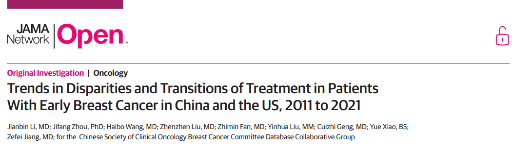 JAMA子刊发表江泽飞教授团队研究,分析中美早期乳腺癌治疗差异