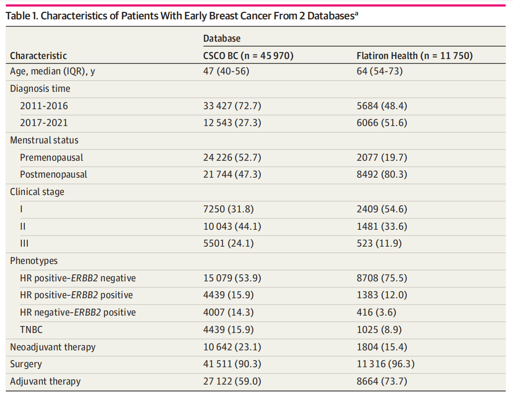 表1.来自2个数据库的早期乳腺癌患者的特征