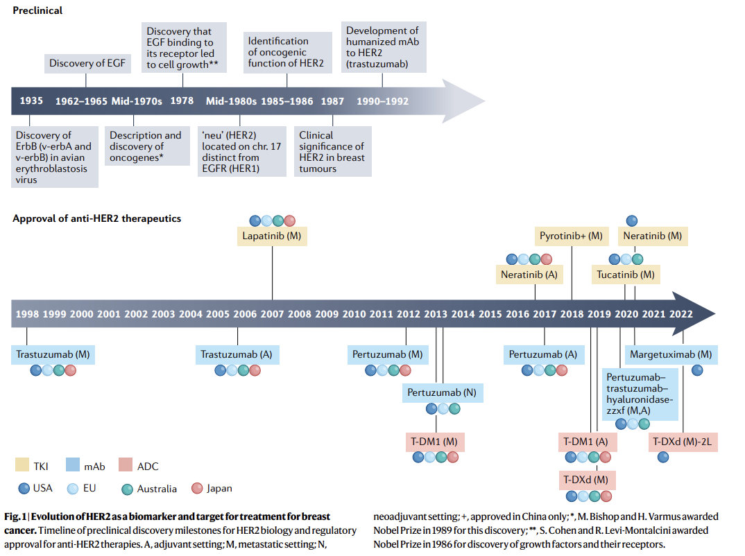文章来源:Swain SM,Shastry M,Hamilton E.Targeting HER2-positive breast cancer:advances and future directions.Nat Rev Drug Discov.2023;22(2):101-126.doi:10.1038/s41573-022-00579-0