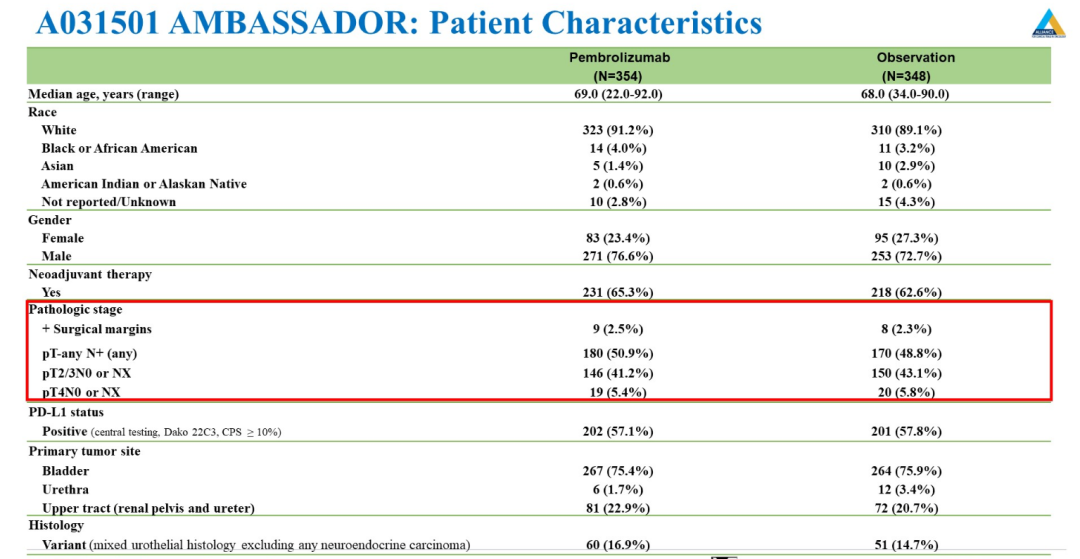 AMBASSADOR Alliance a 031501:帕博利珠单抗辅助治疗对比观察用于肌层浸润性和局部晚期尿路上皮癌(MIUC)的III期研究(摘要号:LBA531)