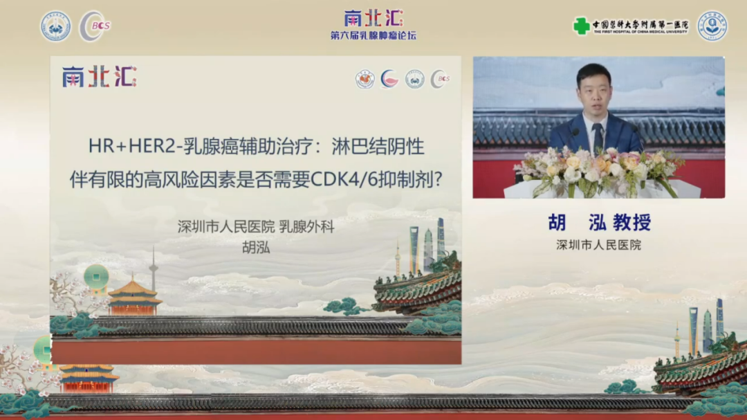 对于N0伴有限高风险的激素受体阳性/人表皮生长因子受体2阴性(HR+/HER2-)乳腺癌患者,大家都认为其复发风险较低,辅助治疗仅用内分泌治疗就足够。但随着NATALEE等研究结果的公布,可以看到,对这部分患者进行强化治疗,以减少其复发风险也很有必要。2024年南北汇上,深圳市人民医院胡泓教授带来了“HR+/HER2-乳腺癌辅助治疗:淋巴结阴性伴有限的高风险因素是否需要CDK4/6抑制剂”的讲课,本文特对讲课内容进行回顾。