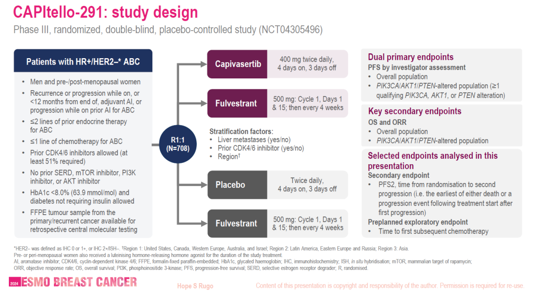 肿瘤瞭望:本次ESMO BC大会中CAPItello-291研究更新了PFS2数据,请您总结一下CAPItello-291带来的主要进展。