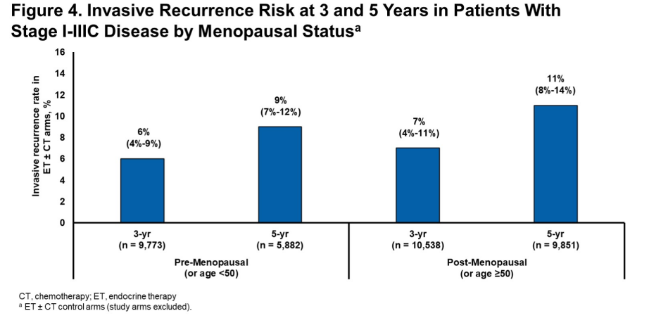 绝经前(或年龄<50岁)患者的5年风险与绝经后(或年龄≥50)相似(9%vs.11%;N=5882)。