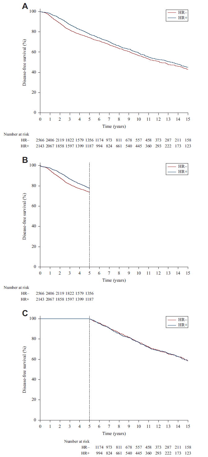 图2.激素受体阳性/阴性患者DFS